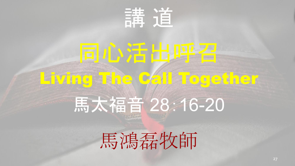 January 11, 2026同心活出呼召 Living The Call Together Speaker: 馬鴻磊牧師 In 粵語堂主日信息Tags 馬太福音, 馬鴻磊牧師 小冊子 經文:馬太福音 28:16-20
